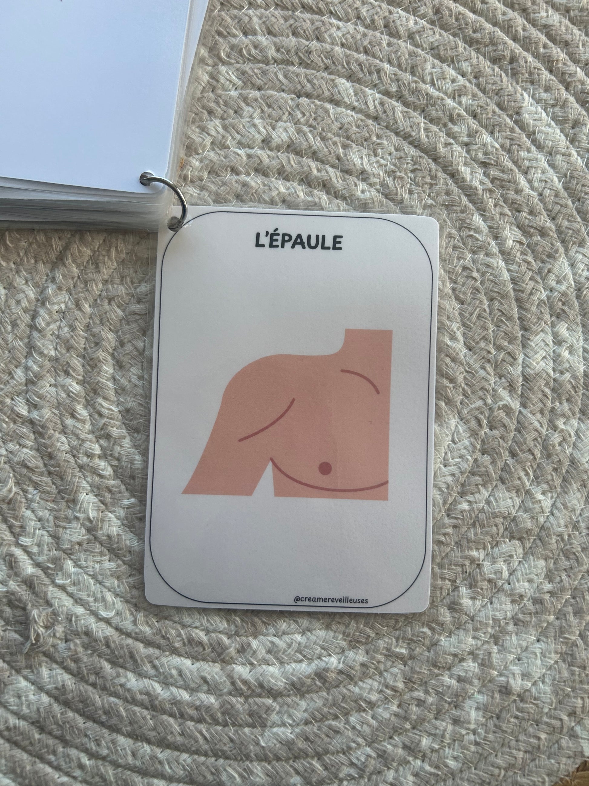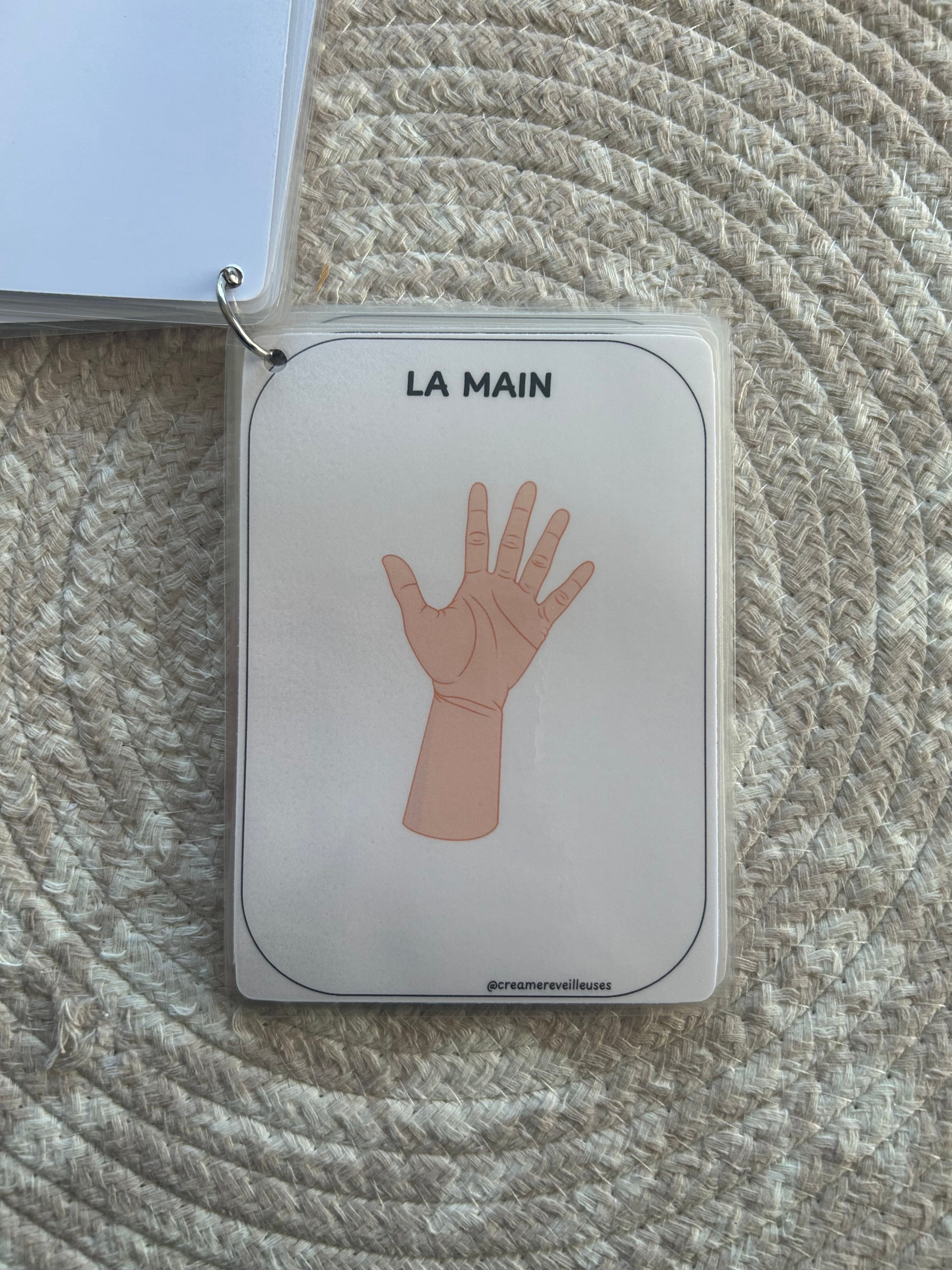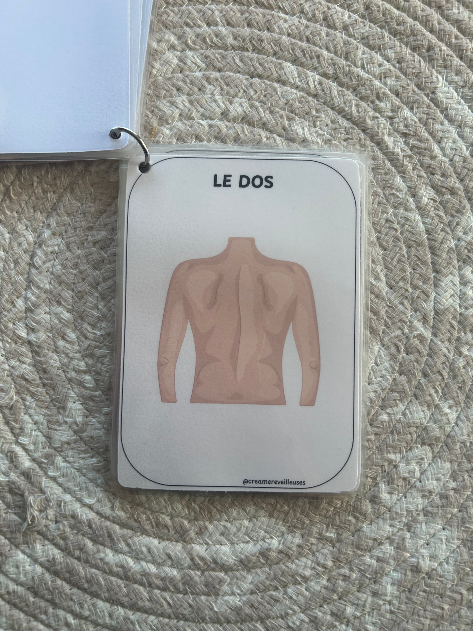 Ce pack comprend 14 cartes sur les parties du corps, une couverture, soit 14 pages, au format A6. Chaque carte est scellée, garantissant une durabilité optimale et une hygiène parfaite pour une utilisation quotidienne.