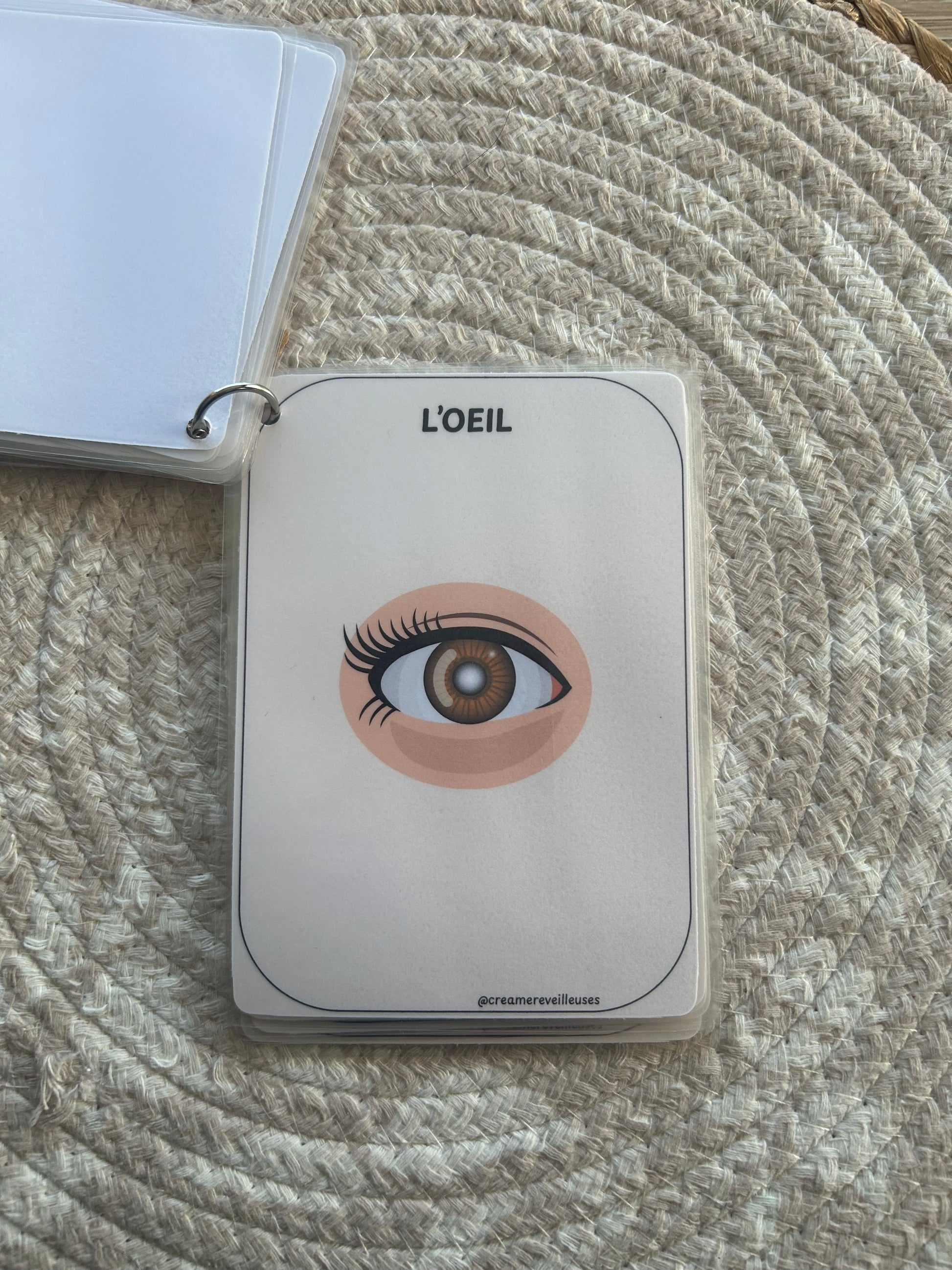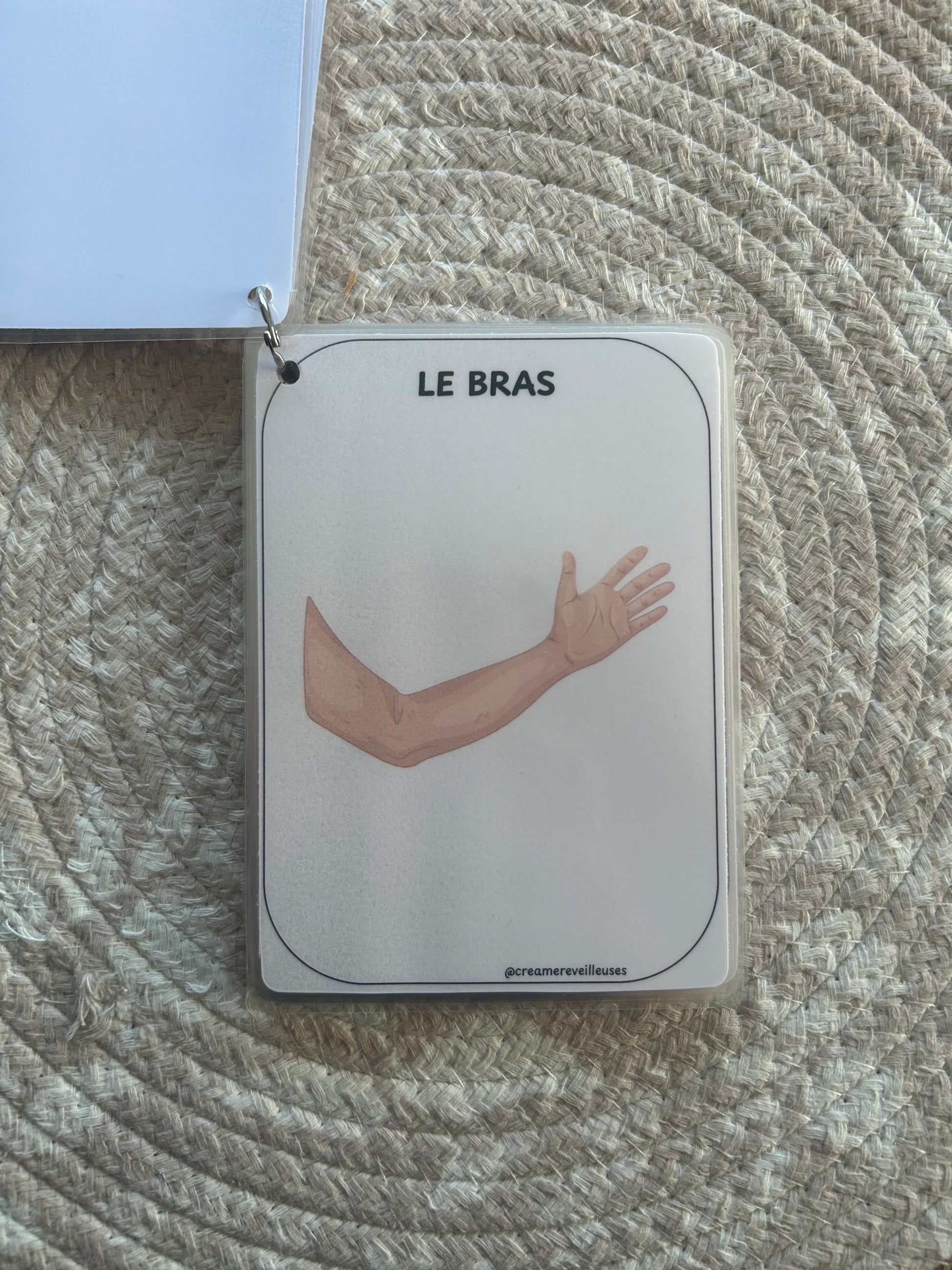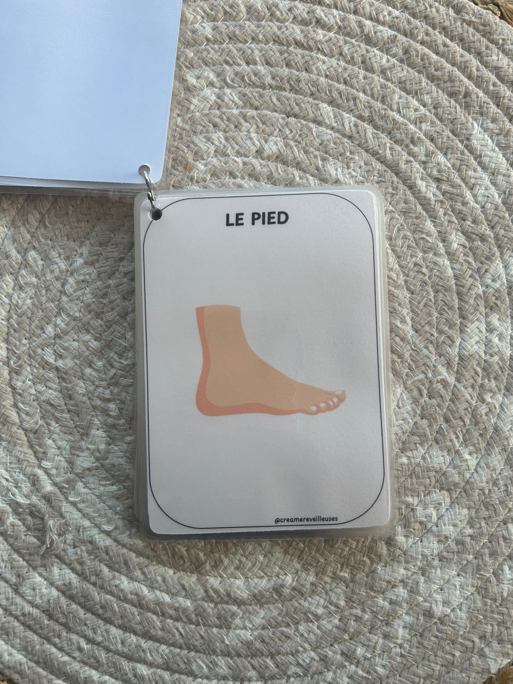 Ce pack comprend 14 cartes sur les parties du corps, une couverture, soit 14 pages, au format A6. Chaque carte est scellée, garantissant une durabilité optimale et une hygiène parfaite pour une utilisation quotidienne.