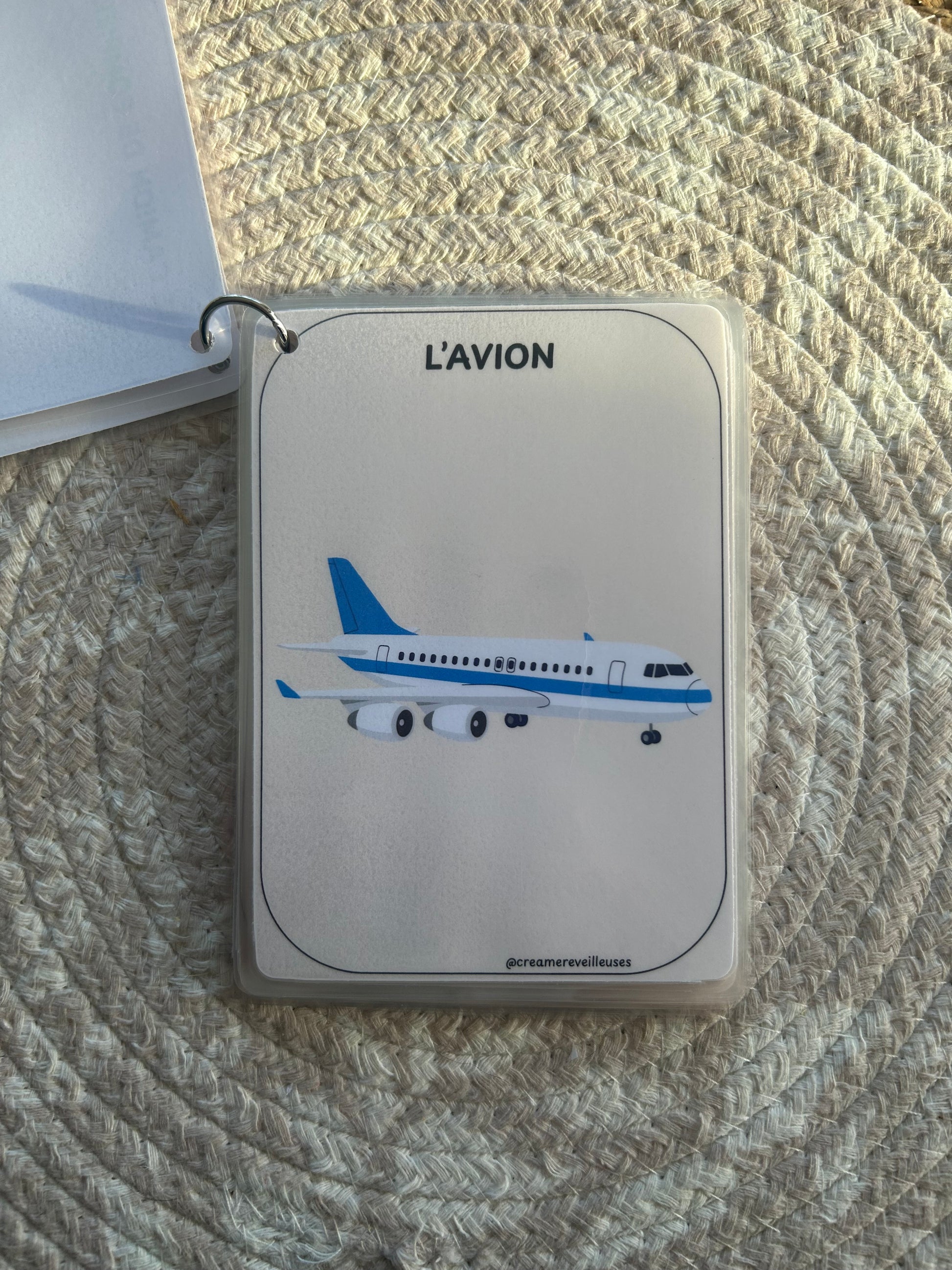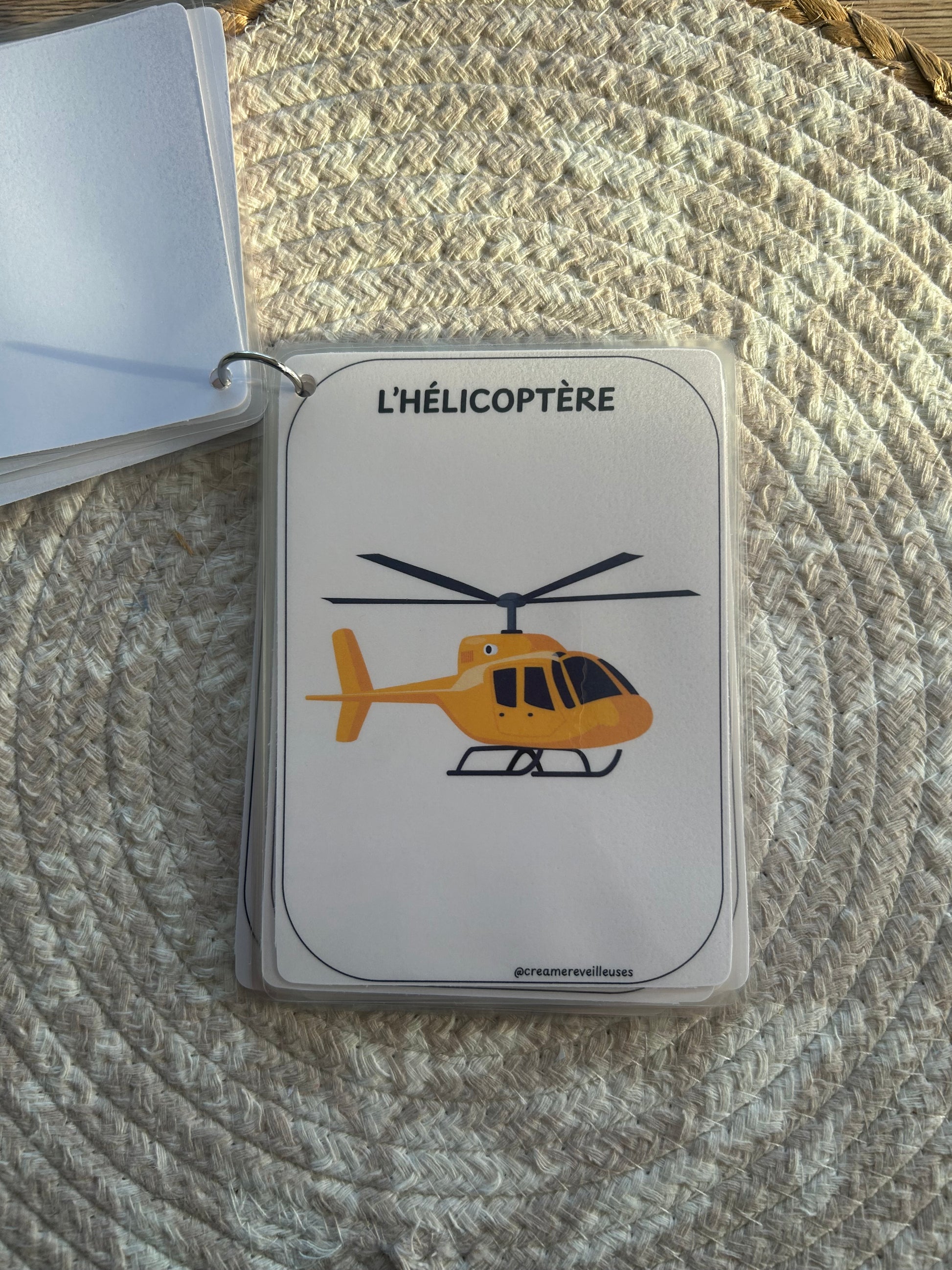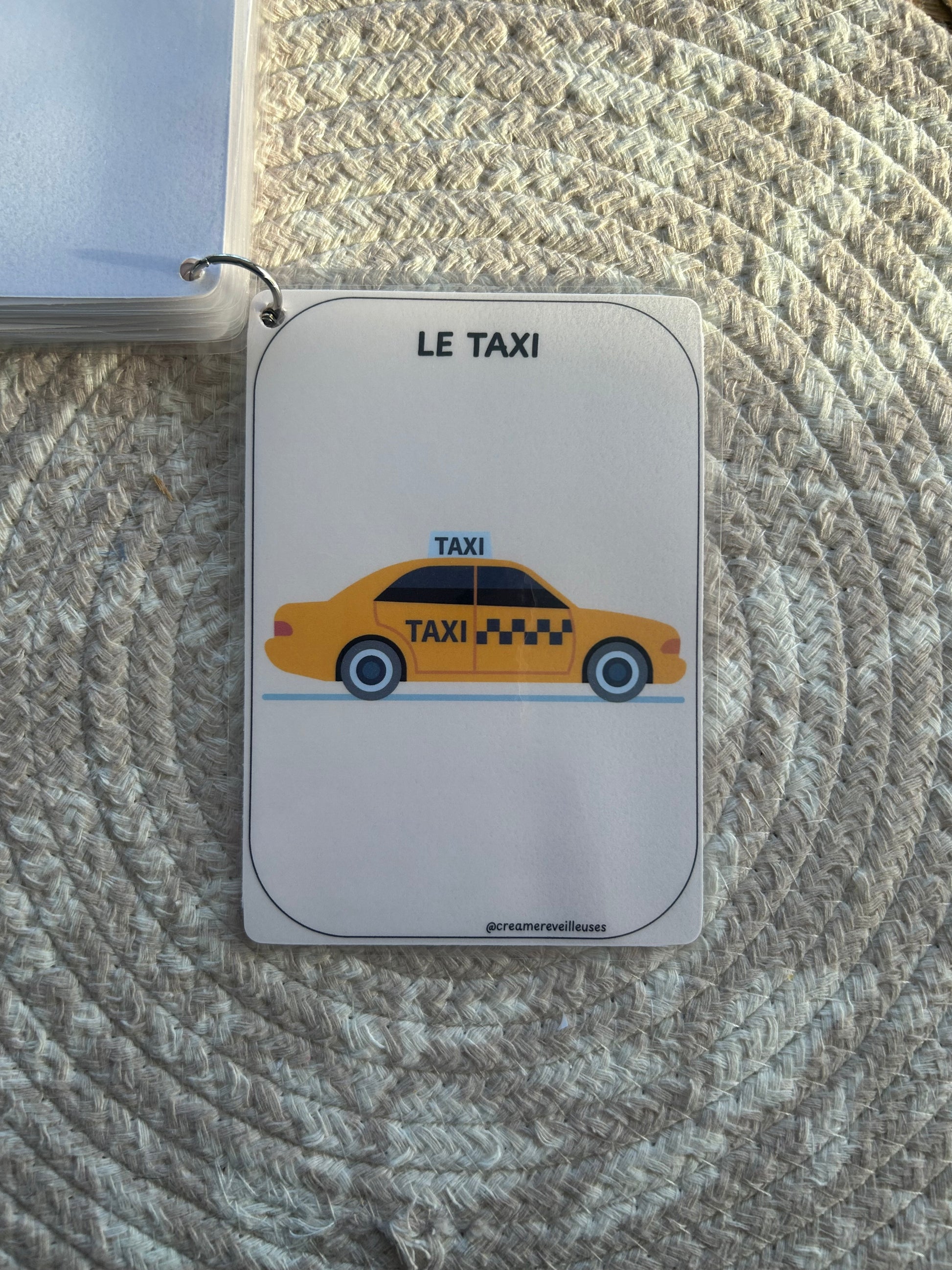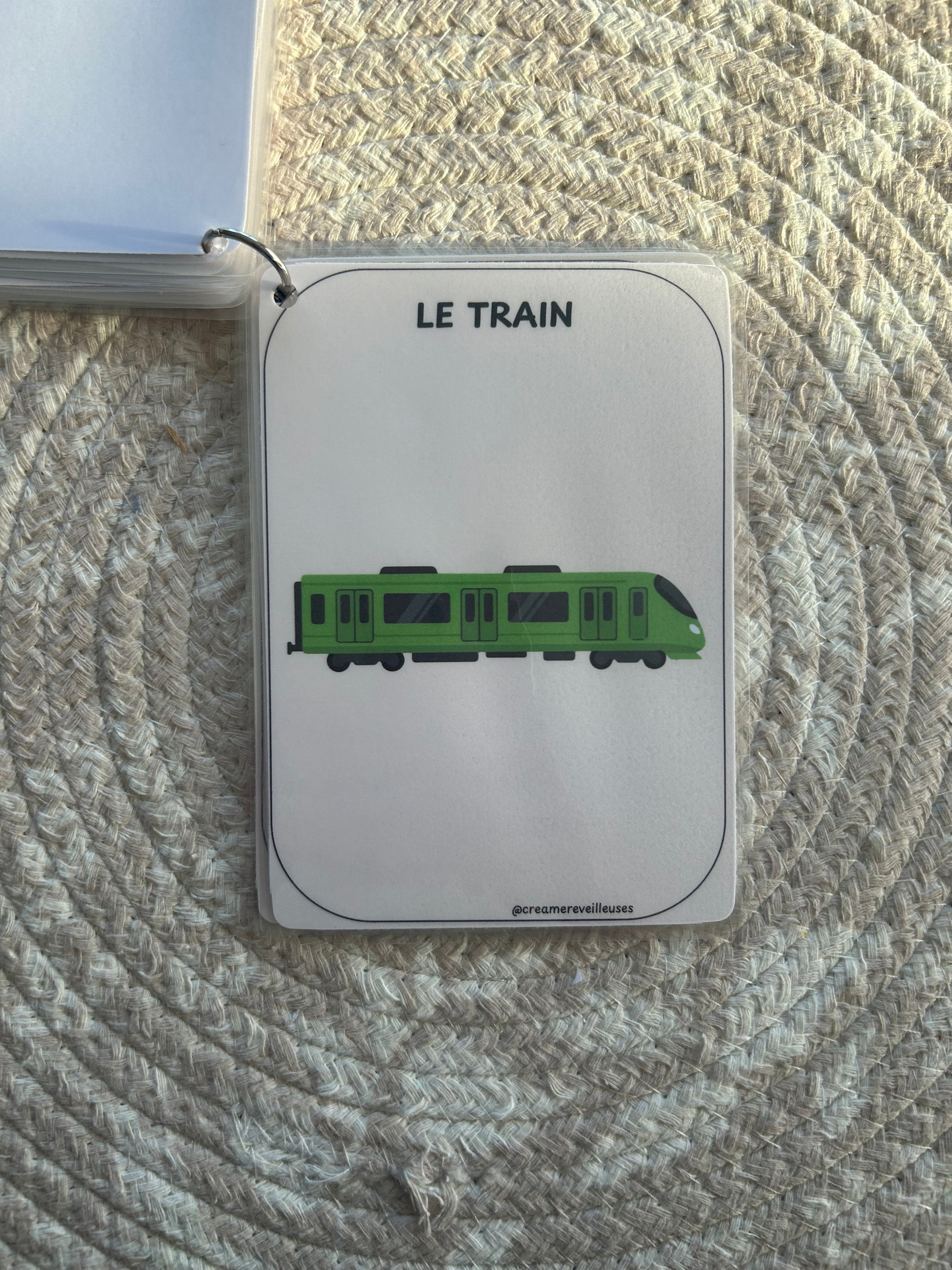 L’ensemble est relié par un anneau (au choix : métal ou silicone), ce qui permet de feuilleter facilement, d’emporter partout et de garder les cartes bien rangées.