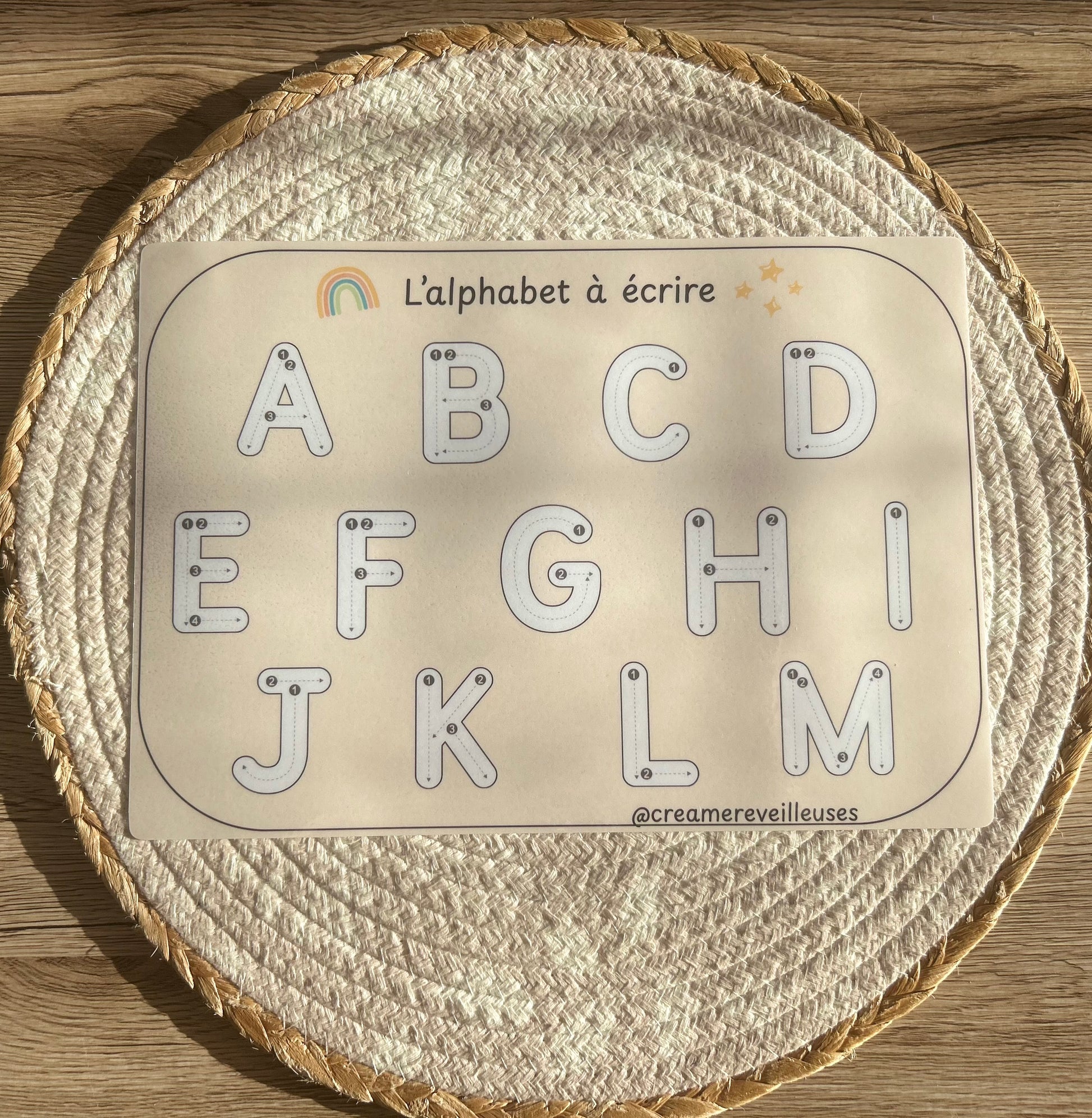 Apprenez à écrire tout en s’amusant grâce à ce support pédagogique réutilisable. Ce set contient 3 feuilles A4 scellées :
